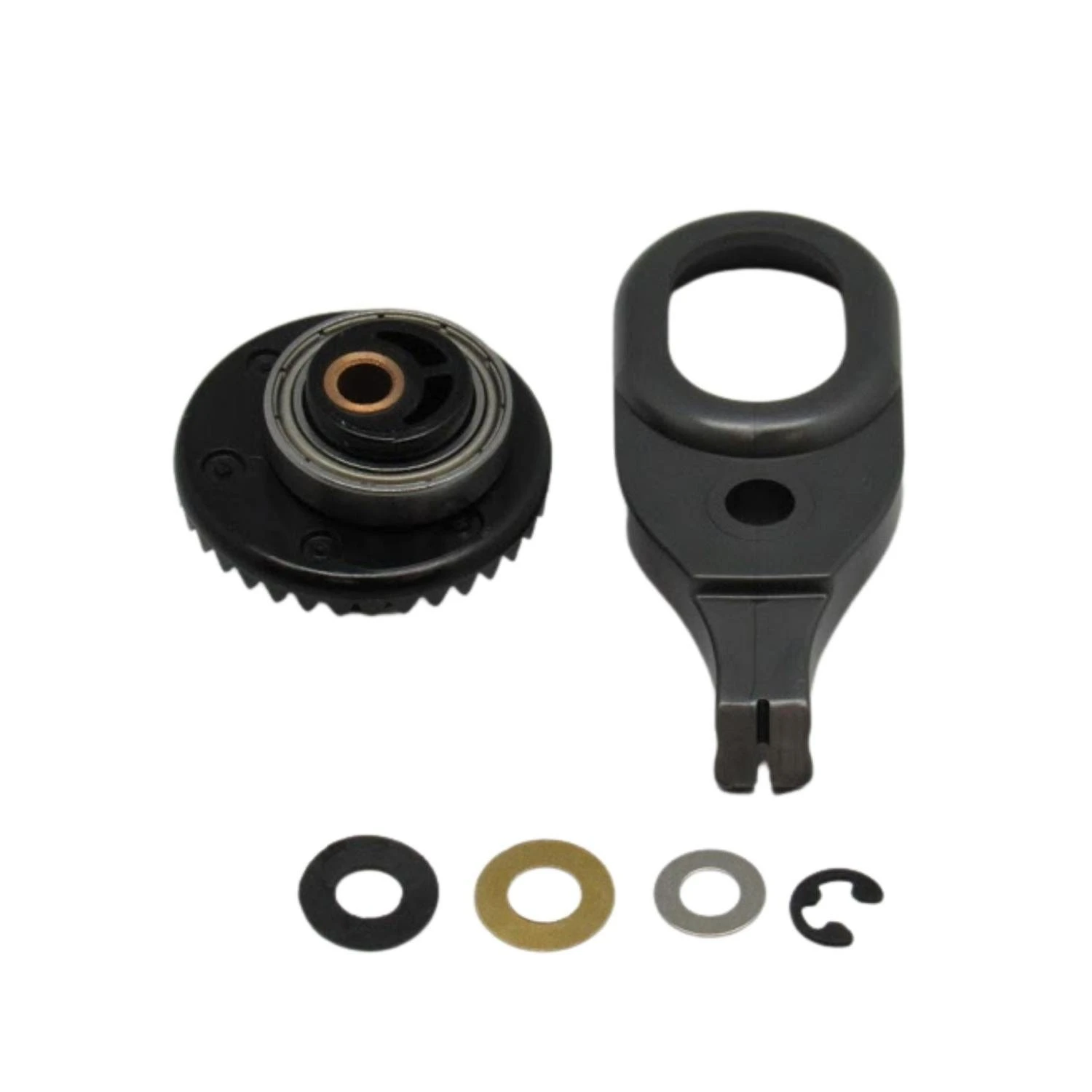 It is the black plastic frame that moves the blade back and forth. It should be replaced when blades are no longer cutting properly. It includes the drive gear, eclip and brass and rubber washers.